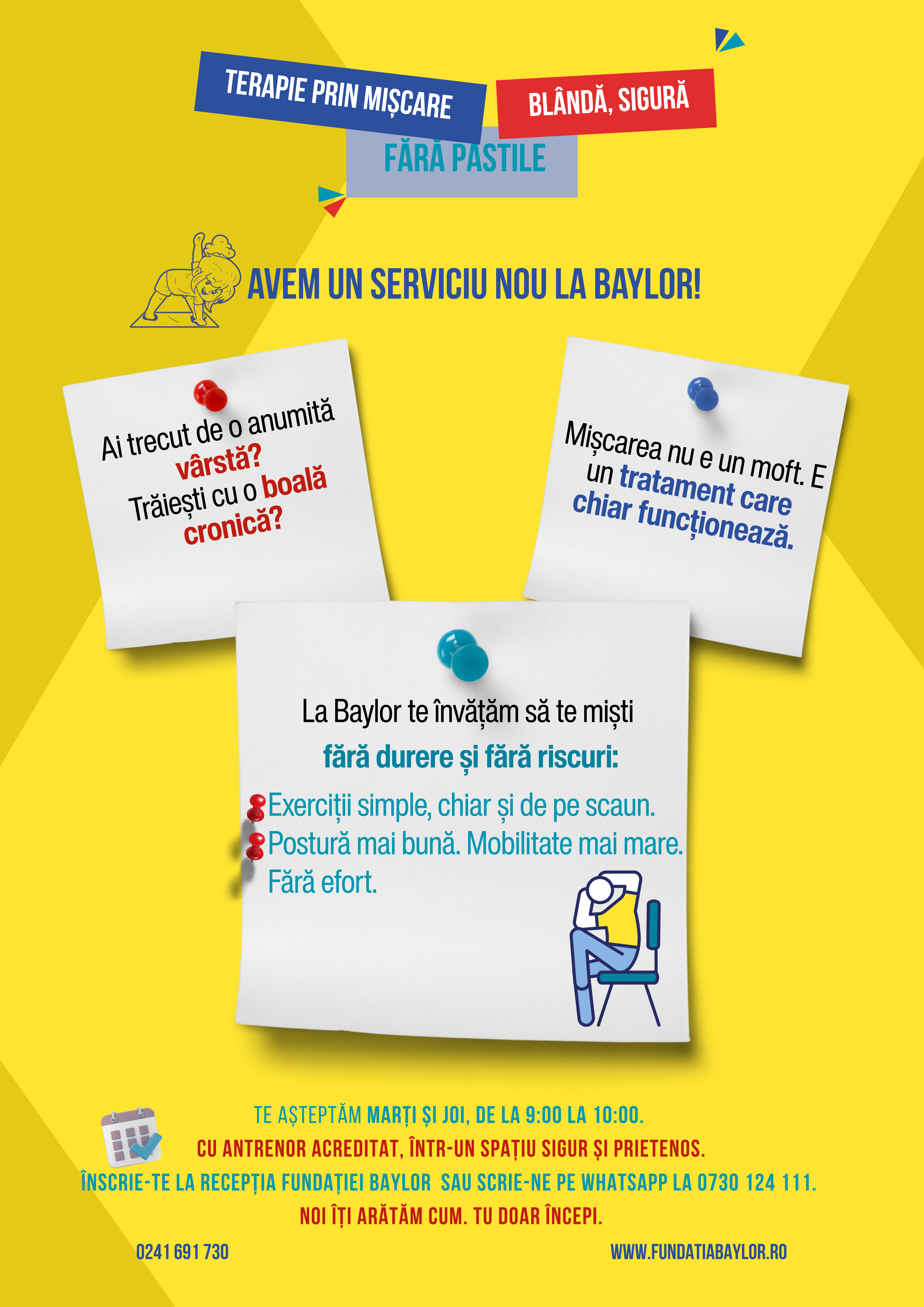 Sesiuni demonstrative gratuite – te așteptăm în fiecare marți și joi, între 9:00 și 10:00, la Fundația Baylor (Str. Prelungirea Liliacului nr. 10, Constanța), pentru mișcare ghidată dedicată tuturor persoanelor care trăiesc cu boli cronice.De ce să alegi aceste programe?